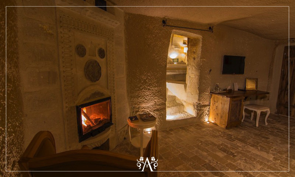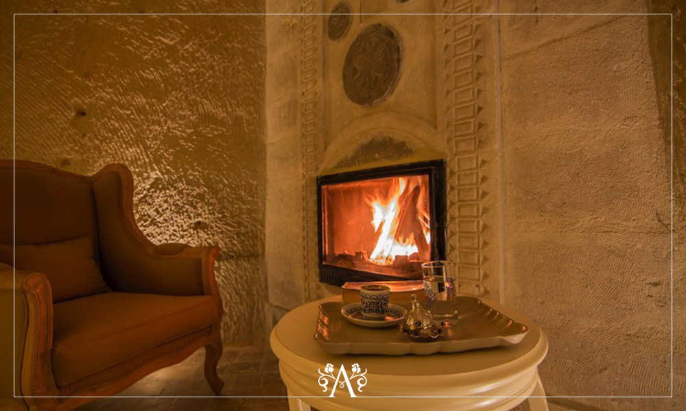 The fireplaces in our rooms are not for heating but for romantic atmosphere and cave + fireplace experience. After 20:00 in the evening, if requested, it can be burned free of charge by our staff for once every night. In addition to the central heating system or ac, electric heater options in our rooms, if it is requested to light a fireplace for heating all day or night, it is subject to an additional charge and will be reflected